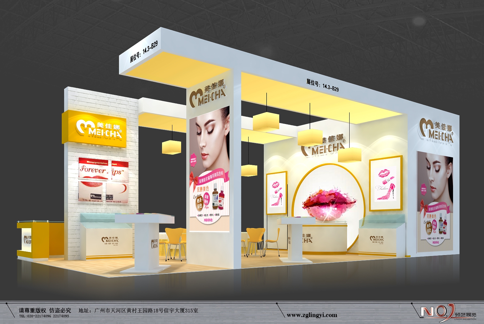 廣州領藝展覽有限公司自成立以來,專注于美博會展覽設計和搭建,以不斷追求和超越的意識創造展覽行業時尚前衛的設計風格,以嚴格的施工質量標準和貼心的服務意識獲得客戶的肯定。領藝為你的展臺設計搭建保駕護航。咨詢電話:18027361256