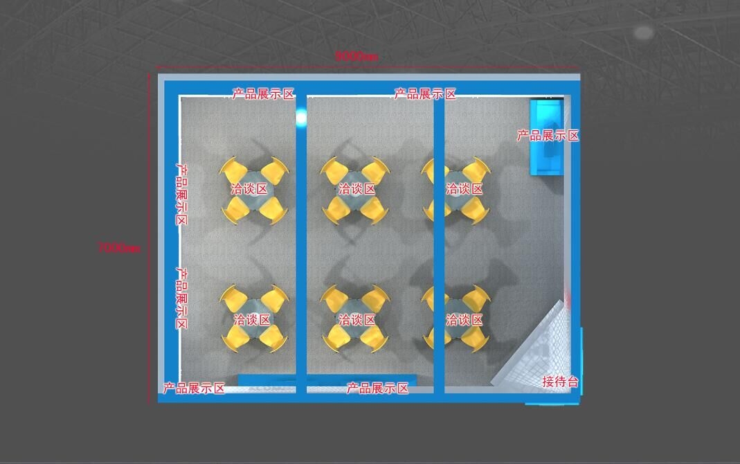 巧妙的運用藍色作主色搭配紅色,著重突出品牌和產品的展示,使整個使整個展位簡潔大方又高端大氣。