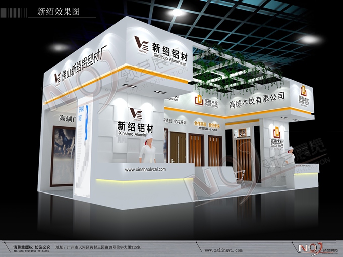 契合新邵鋁業的品牌形象和產品特性,采用框型結構,再搭配燈具燈光的效果,襯托出展位簡約、便捷的氛圍,突出一種精致、簡約的時尚品味。