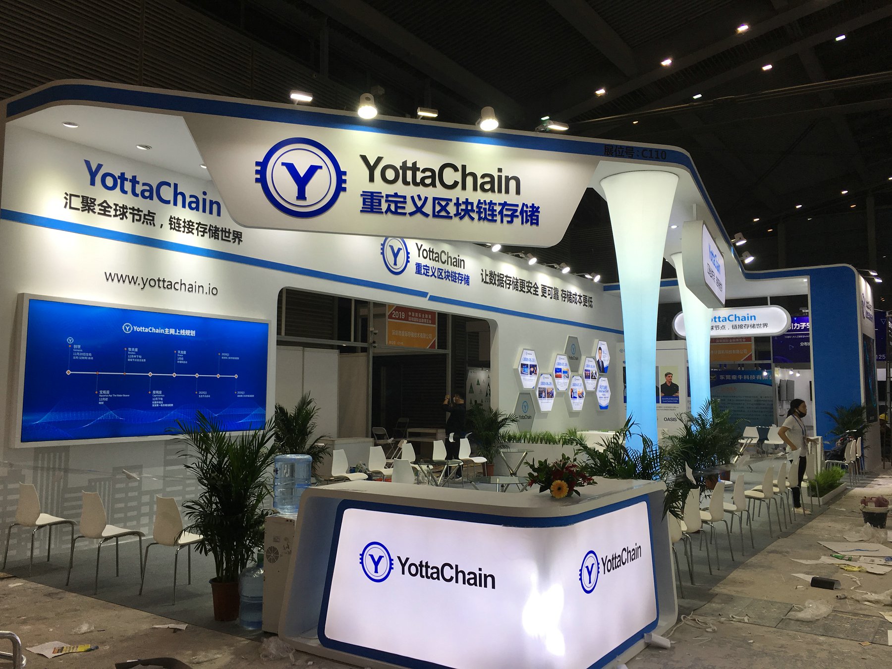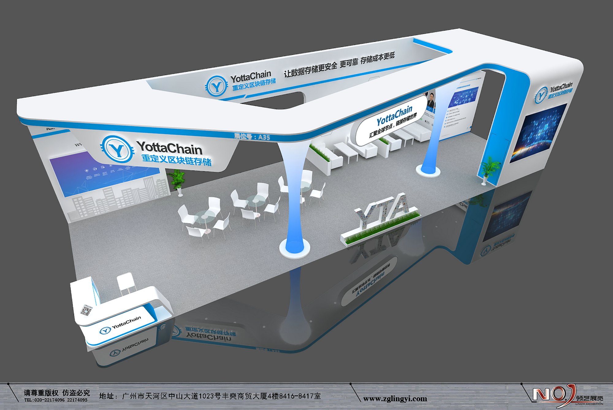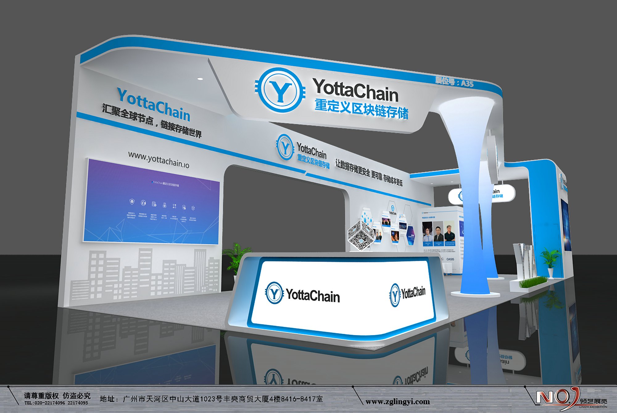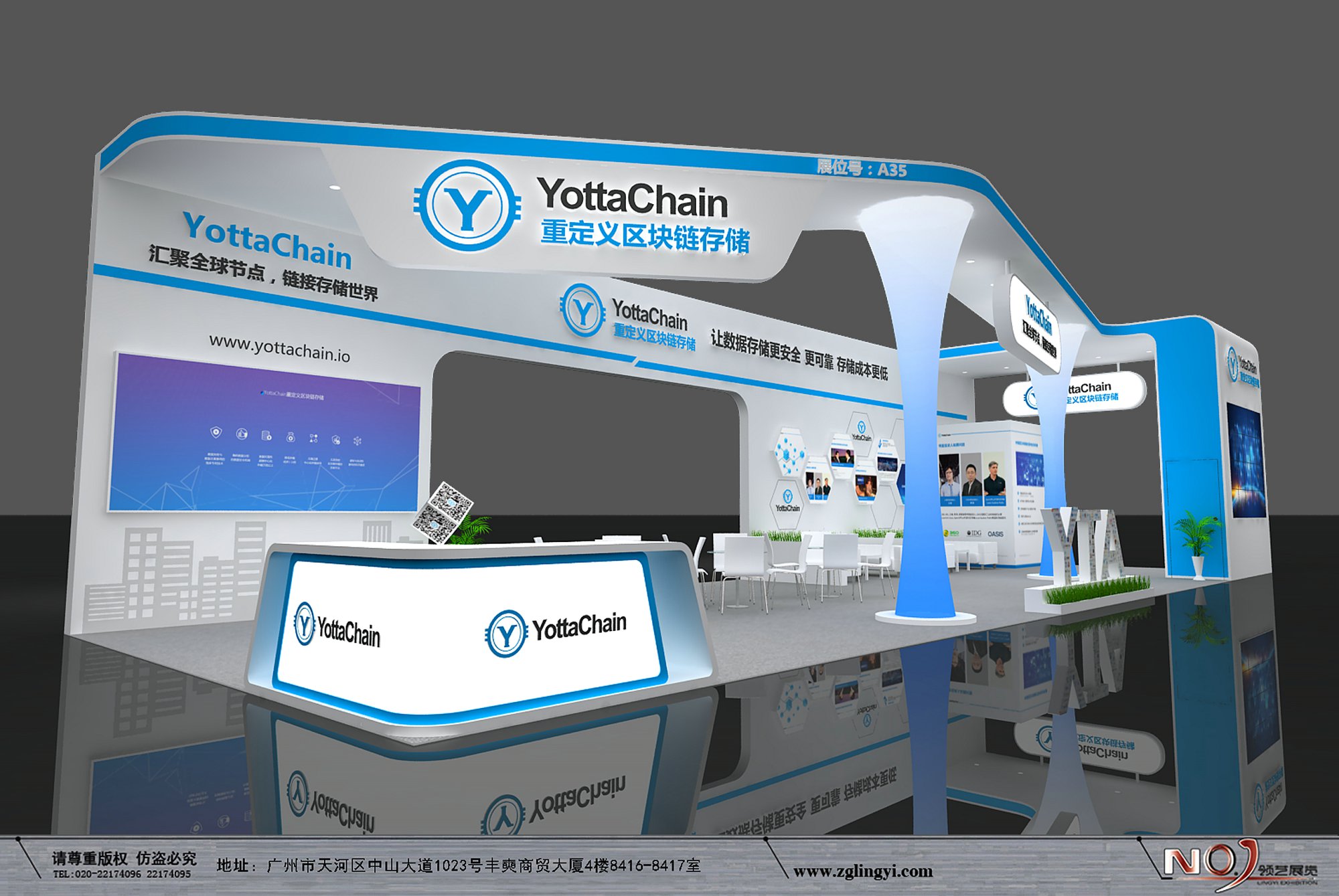 契合YottaChain的品牌形象和產(chǎn)品特性,采用開放式結(jié)構(gòu),再搭配燈具燈光的效果,襯托出展位大氣、豪華的氛圍,突出一種簡約、時(shí)尚的品味。