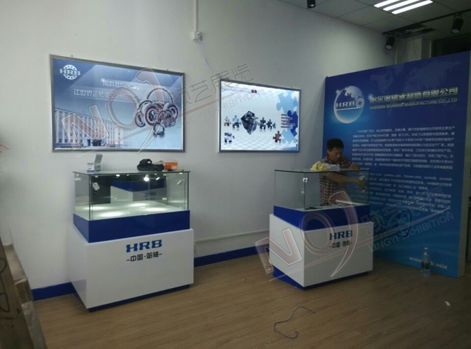 契合的哈軸品牌形象和產品特性,采用矩形結構,再搭配燈具燈光的效果,襯托出展位高端、時尚的氛圍,突出一種現代、歐美的時尚品味。